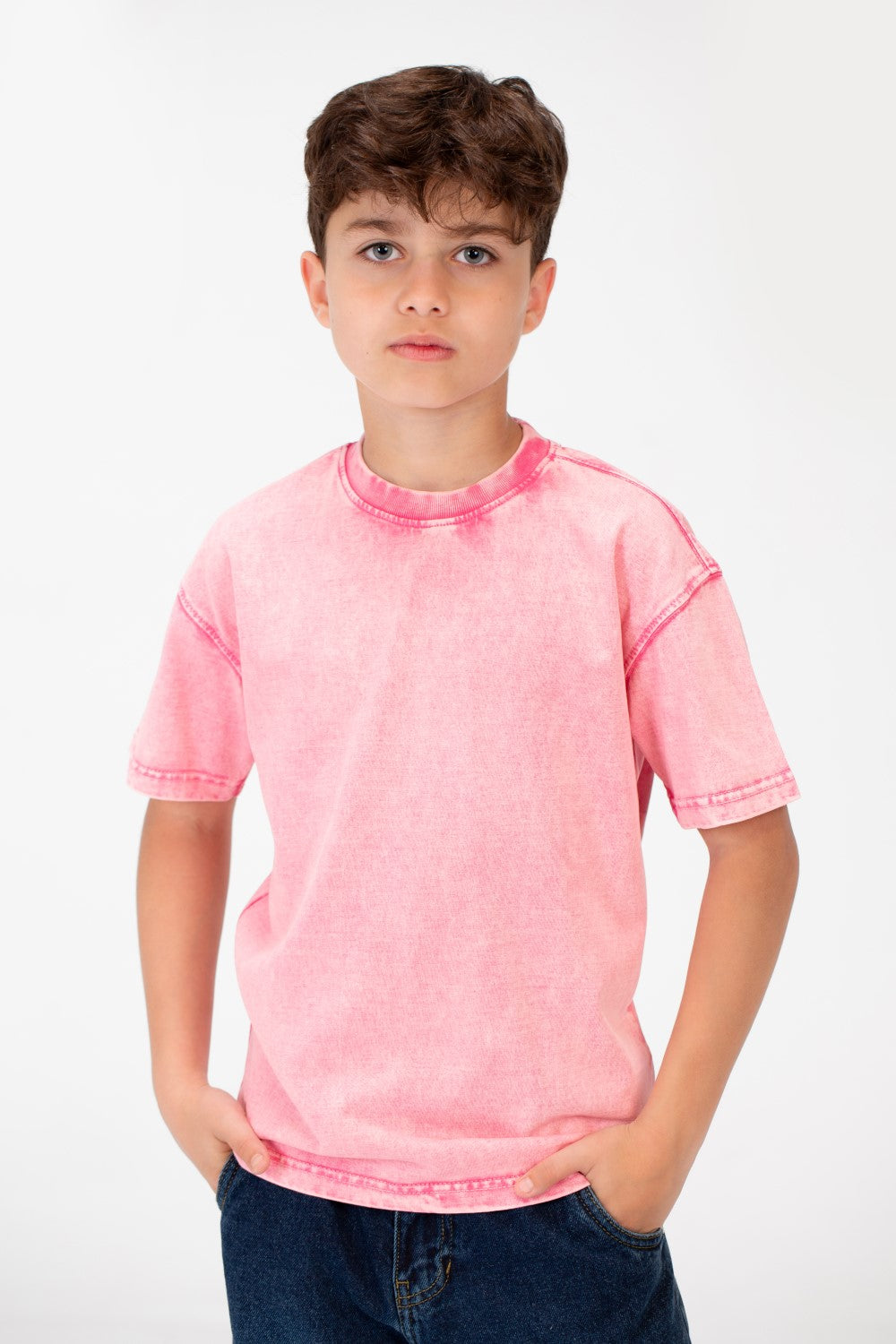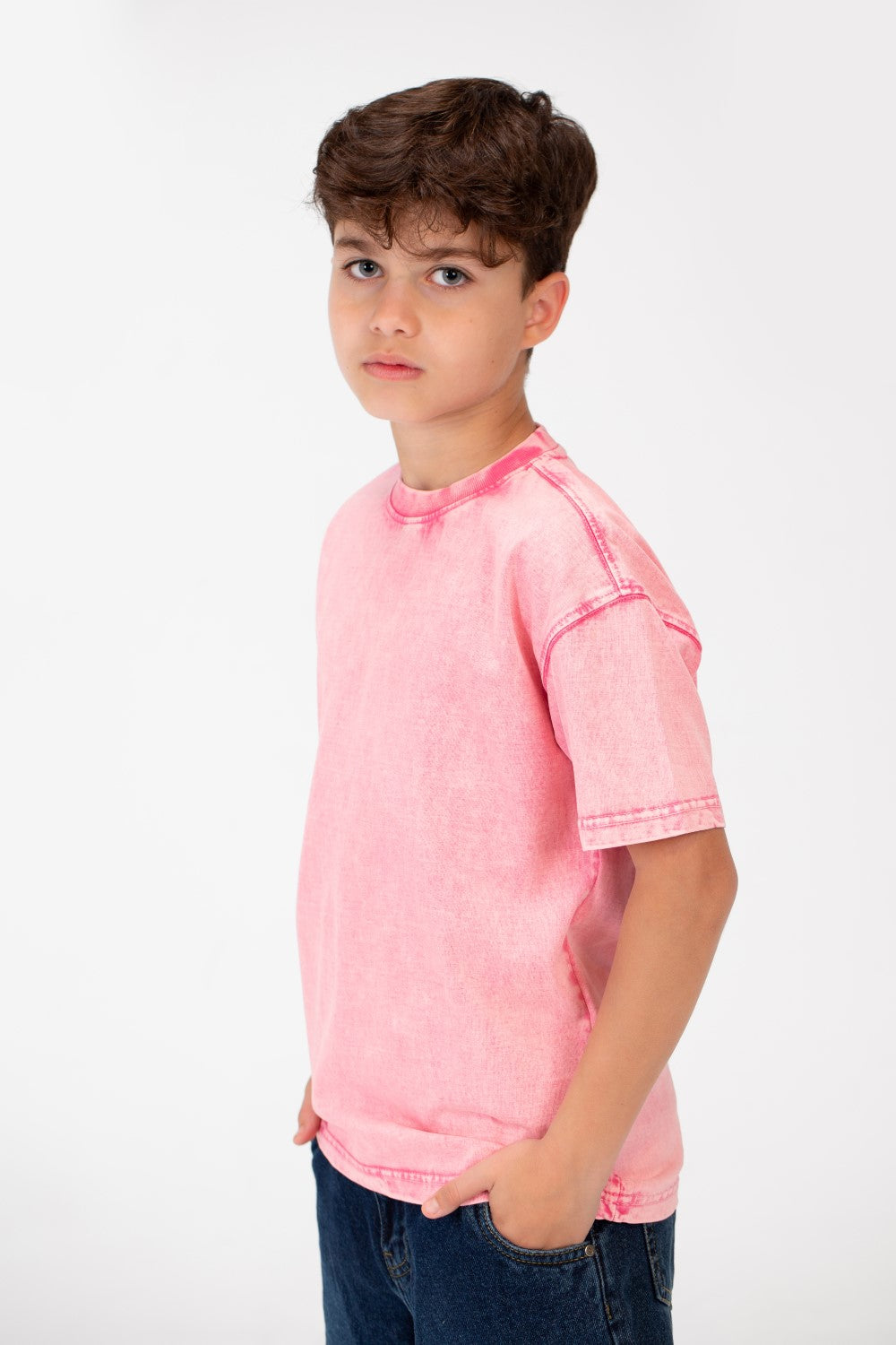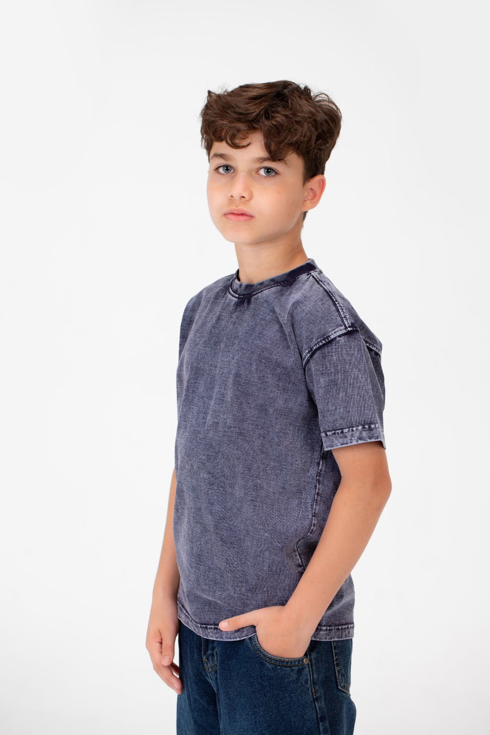 مصنوع من قماش عالي الجودة، يقدم هذا القميص ملمسًا ناعمًا يحافظ على برودة وراحة الأولاد طوال اليوم. تصميمه الكلاسيكي برقبة دائرية يضمن مظهرًا خالدًا يتناسب بسهولة مع أي زي، مما يجعله إضافة متعددة الاستخدامات لأي خزانة ملابس. اللمسة المحجرة تضيف لمسة من الأناقة المريحة، مثالية للمغامرات اليومية.