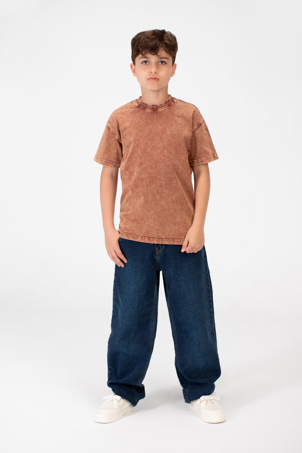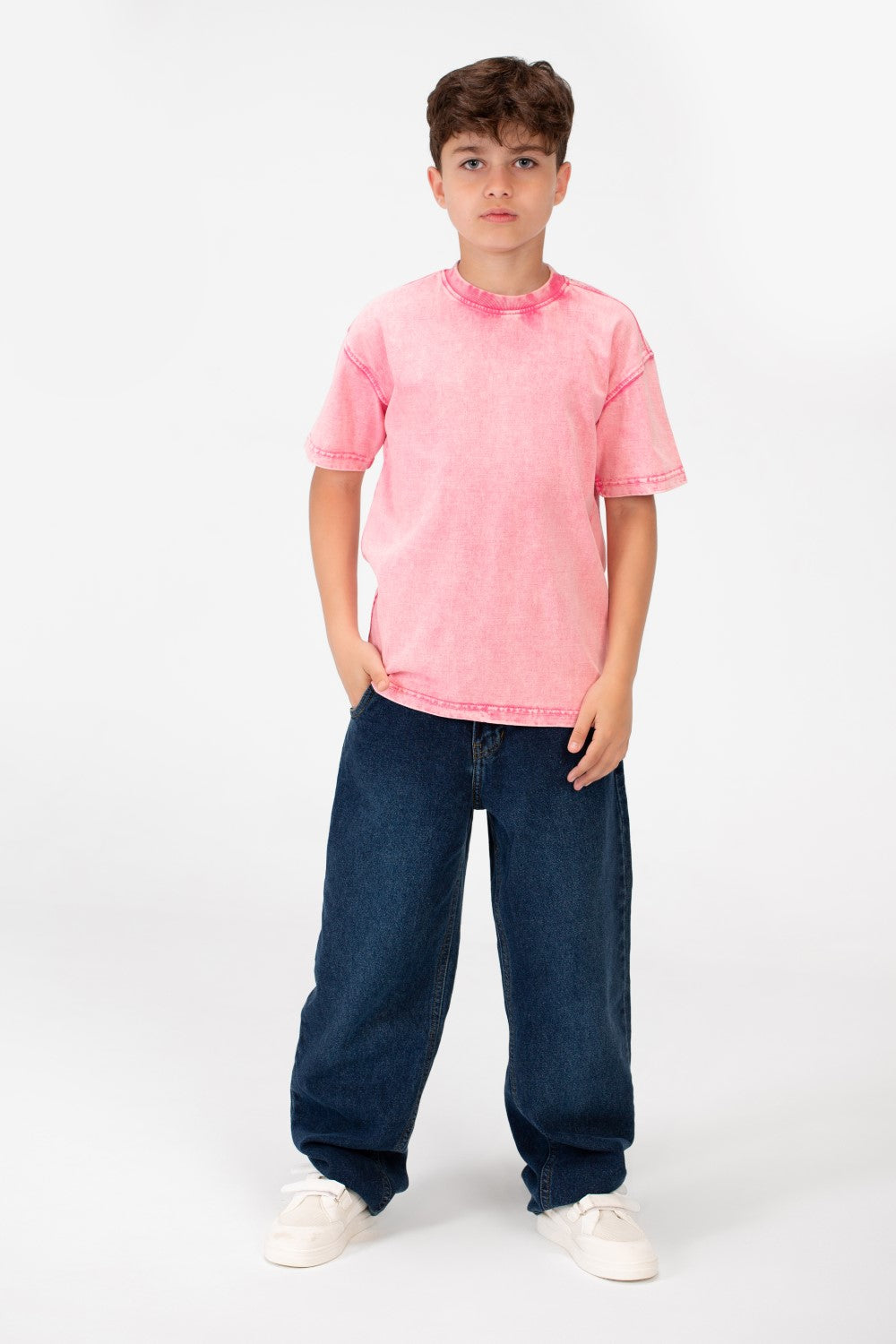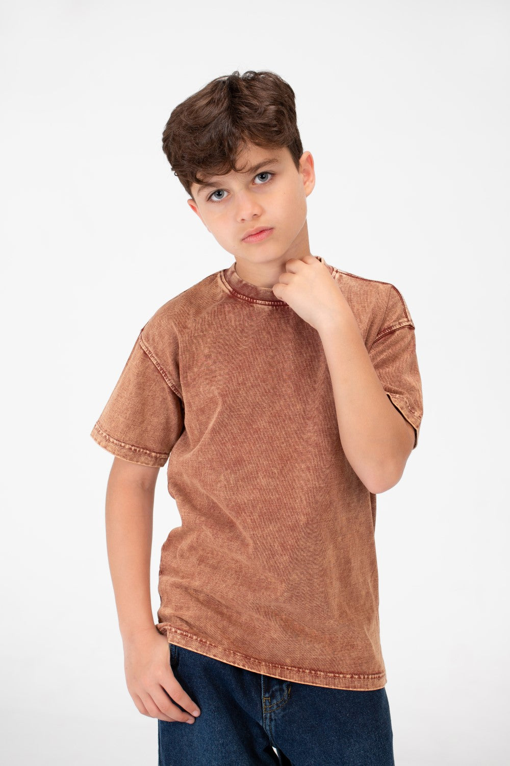 مصنوع من قماش عالي الجودة، يقدم هذا القميص ملمسًا ناعمًا يحافظ على برودة وراحة الأولاد طوال اليوم. تصميمه الكلاسيكي برقبة دائرية يضمن مظهرًا خالدًا يتناسب بسهولة مع أي زي، مما يجعله إضافة متعددة الاستخدامات لأي خزانة ملابس. اللمسة المحجرة تضيف لمسة من الأناقة المريحة، مثالية للمغامرات اليومية.