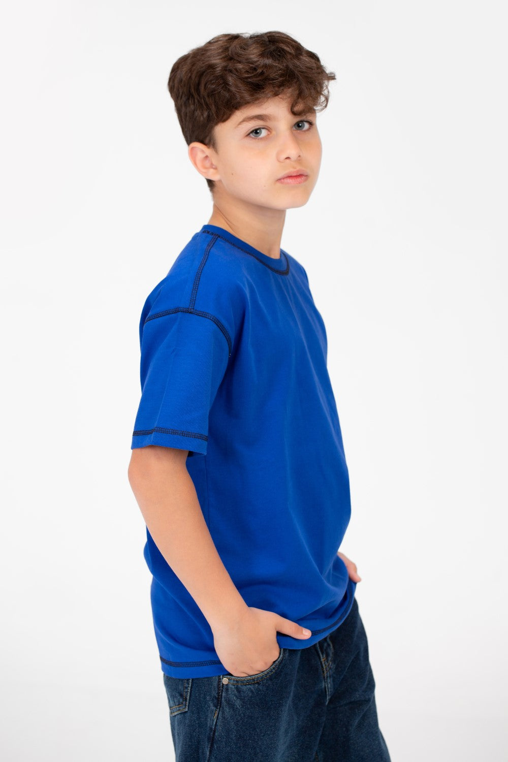 لا تفوت هذه القطعة الأساسية! أضف قميص الأولاد الأساسي واسع الحجم بأكمام نصفية إلى سلة مشترياتك اليوم وارتقِ بأناقته بسهولة.