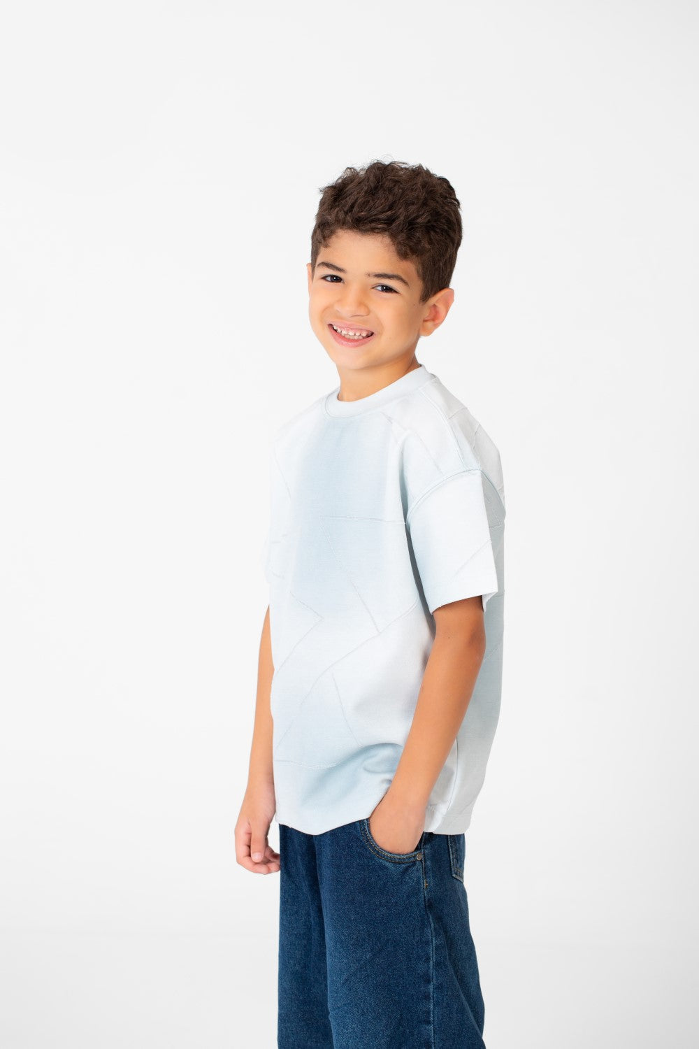 مصمم للمغامرات اليومية، يتميز هذا القميص بـقماش ناعم وعالي الجودة يشعر بالراحة على الجلد. التصميم الكلاسيكي بـالياقة الدائرية والأكمام القصيرة المريحة يجعله قطعة متعددة الاستخدامات تناسب كل المواسم، مثالي للمدرسة، اللعب، أو الاسترخاء.