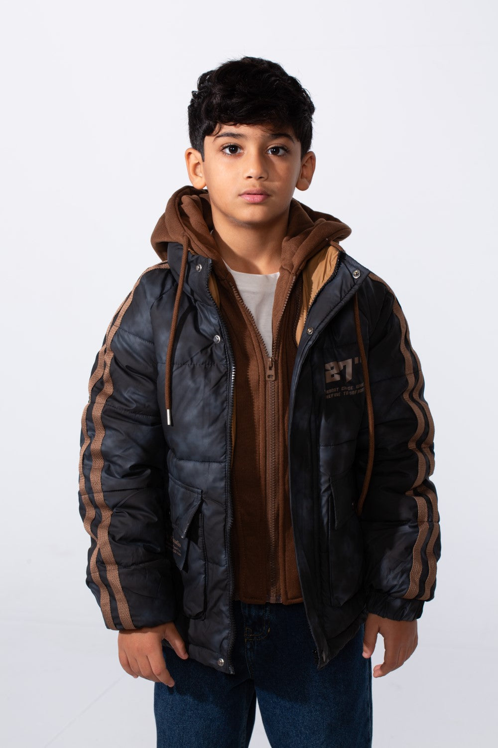 استعد للمرح الشتوي مع هذه السترة المتينة والمقاومة للماء، التي تتميز بتفاصيل مخططة ملفتة على الأكمام وتصميم مقاوم للماء.