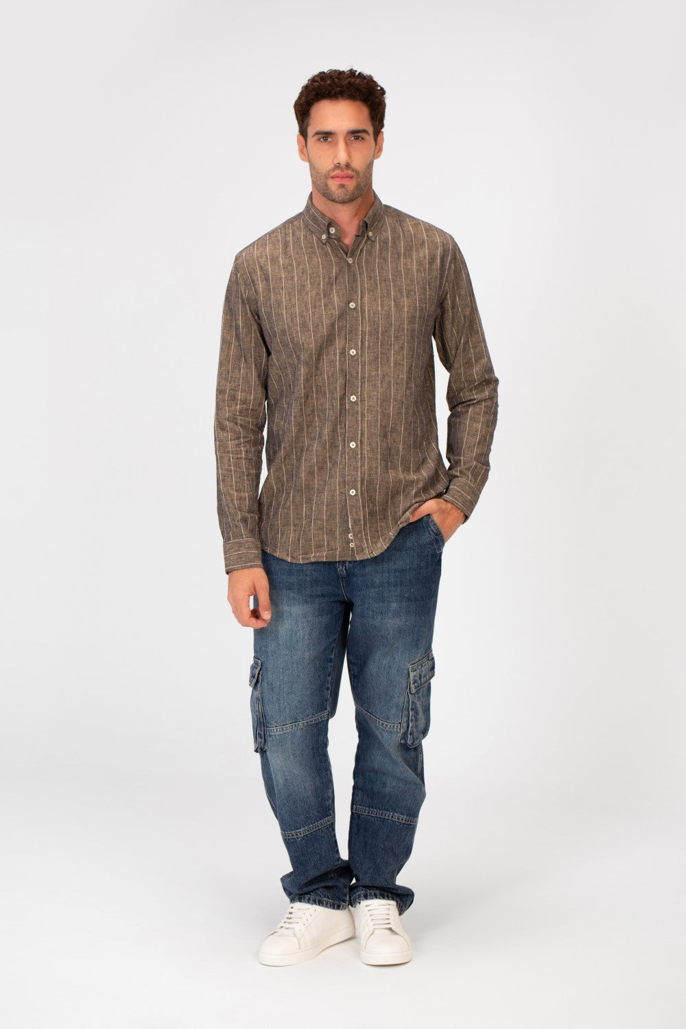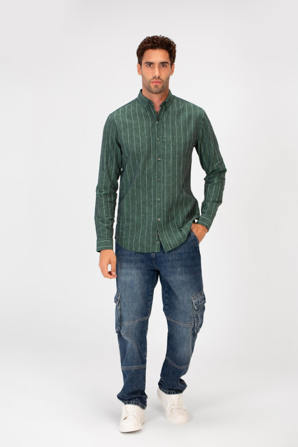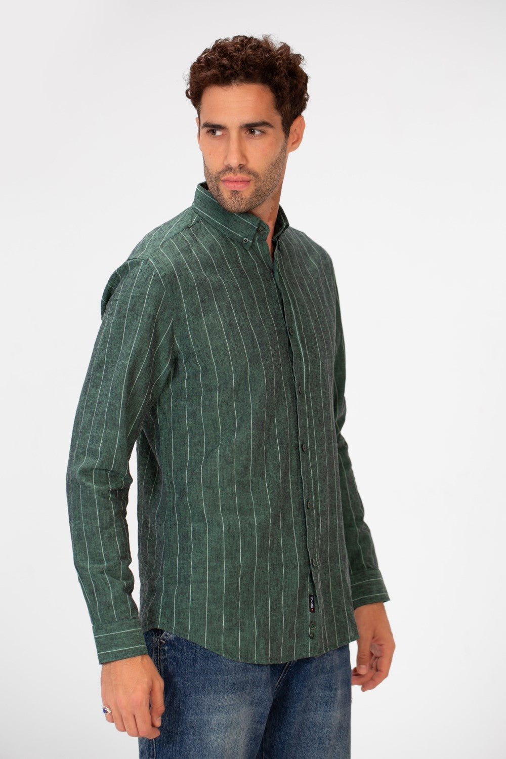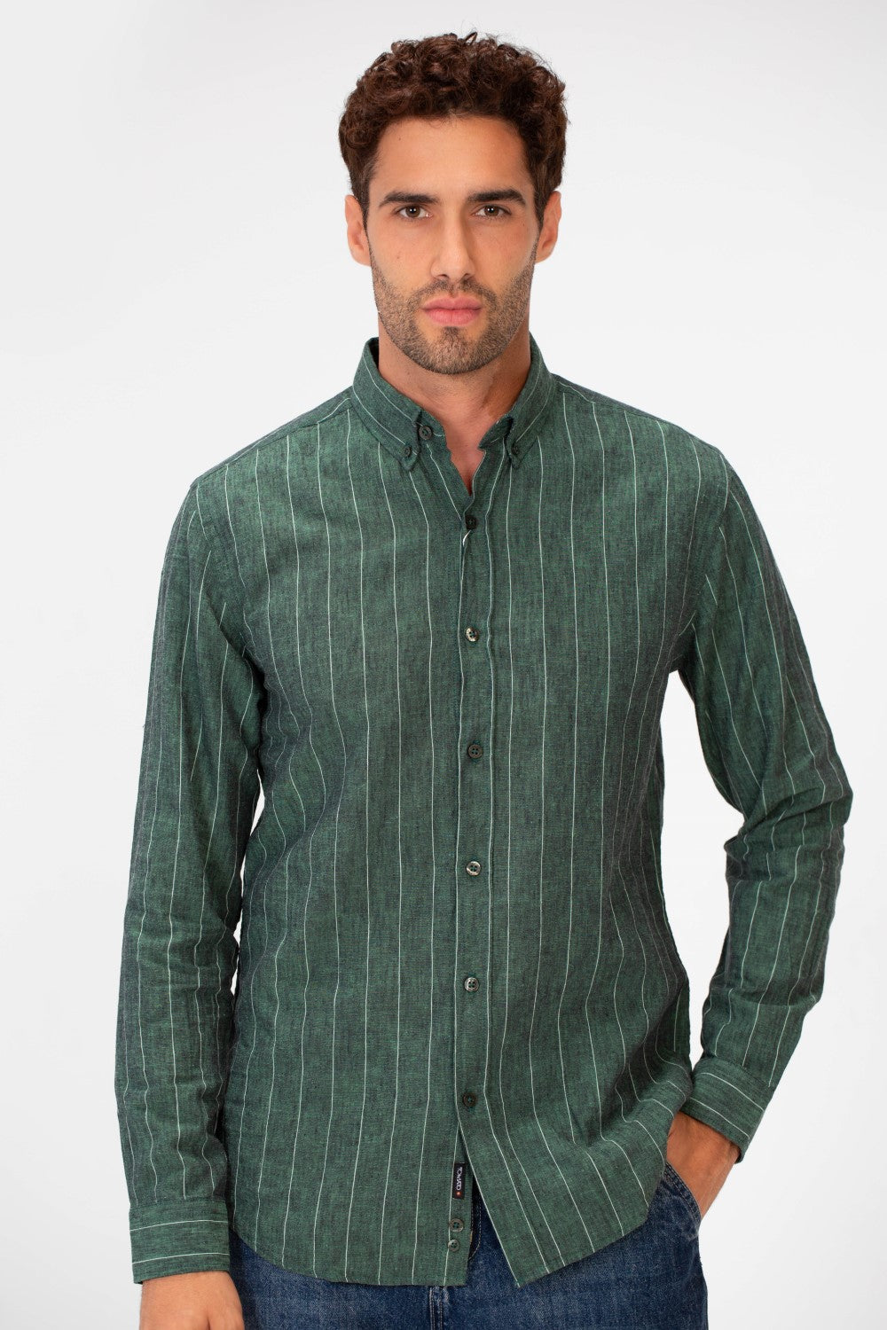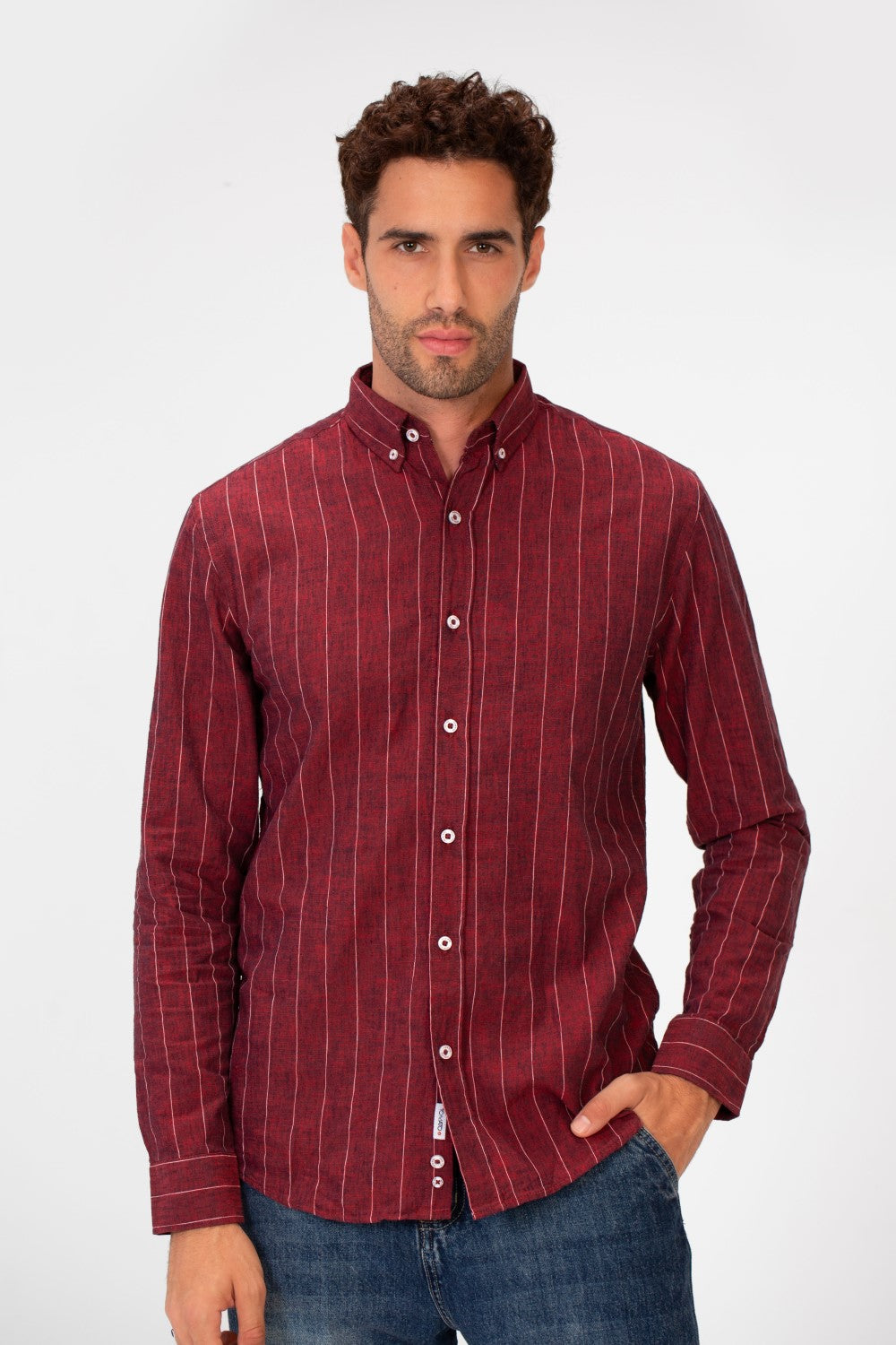 ارتقِ بأسلوبك اليومي. اكتشف المزيج المثالي من الراحة والجودة والتصميم العصري مع قميص الكتان المخطط Slim Fit الخاص بنا.