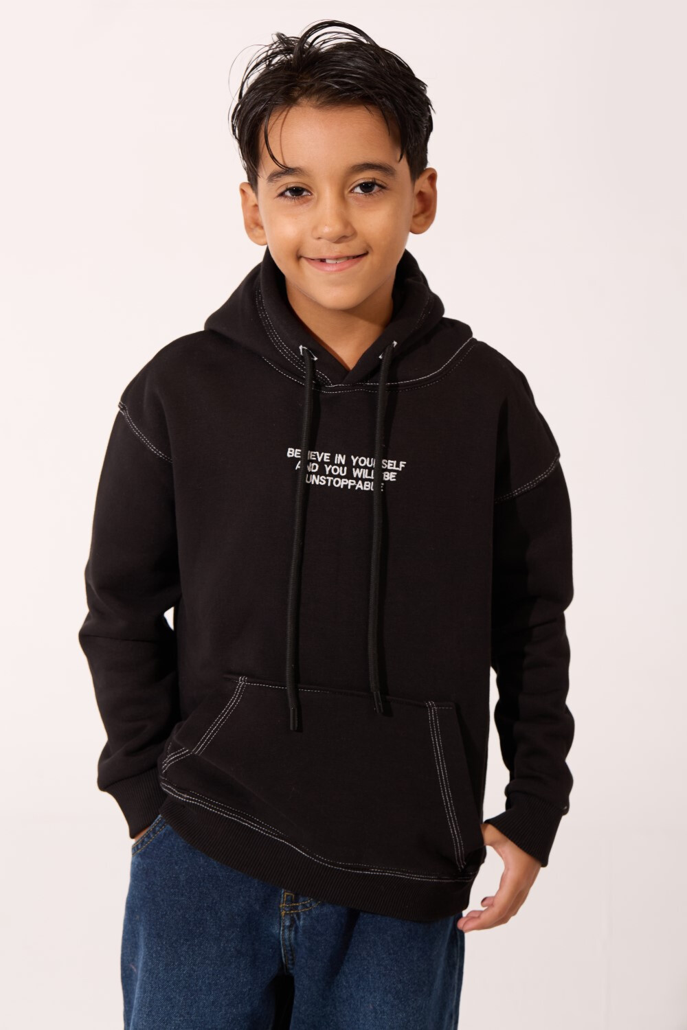 Boy's Casual Oversized Melton Hoodie Sweatshirt With Front Text Print