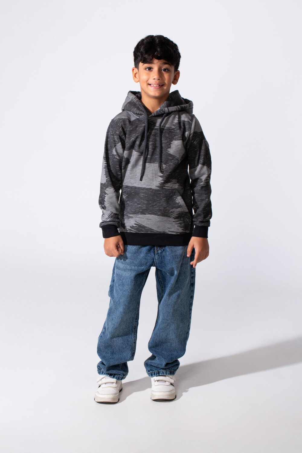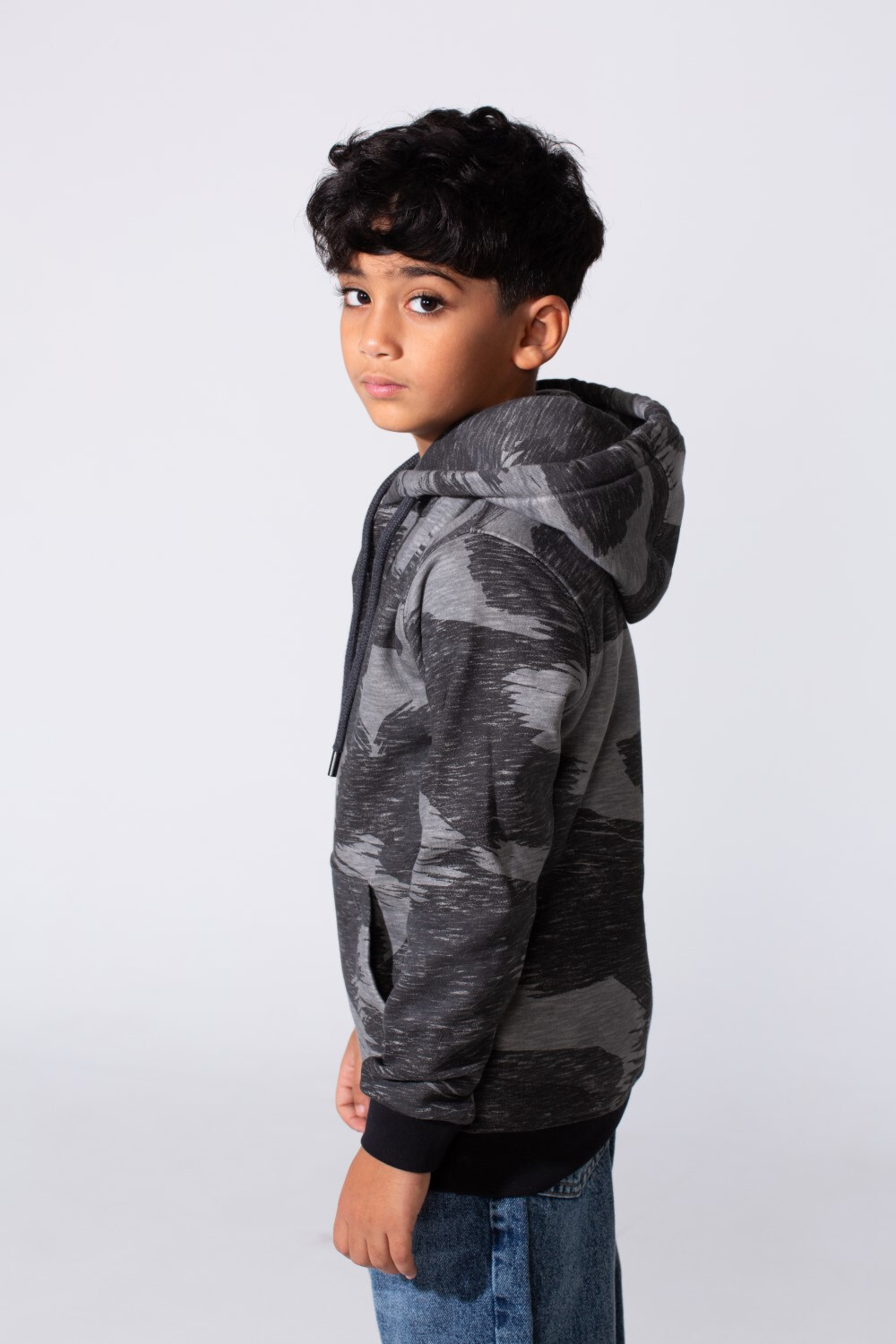 Boy's Slim Fit Long Sleeved Camo Melton Sweatshirt With Hood