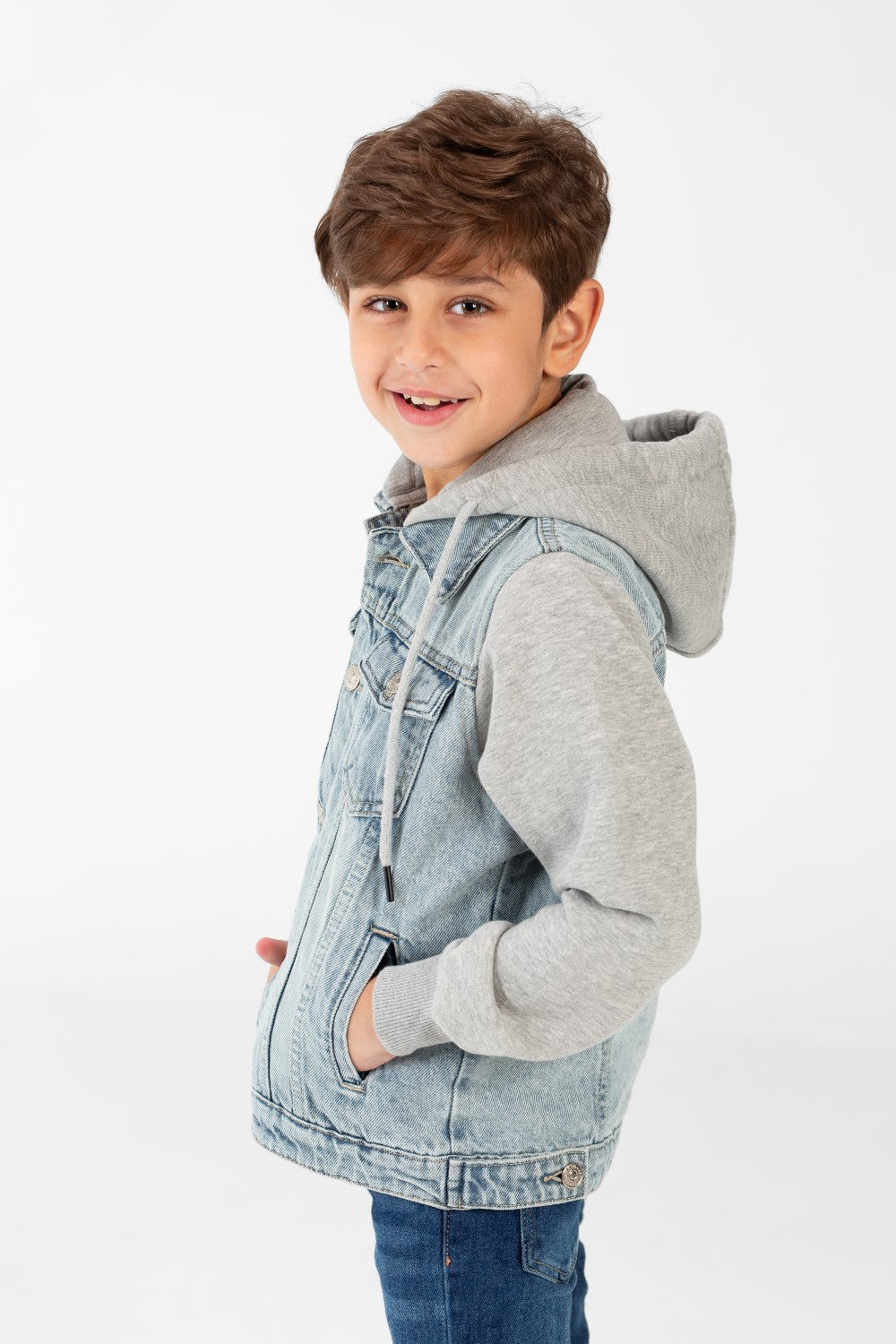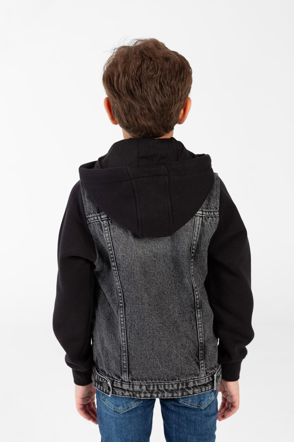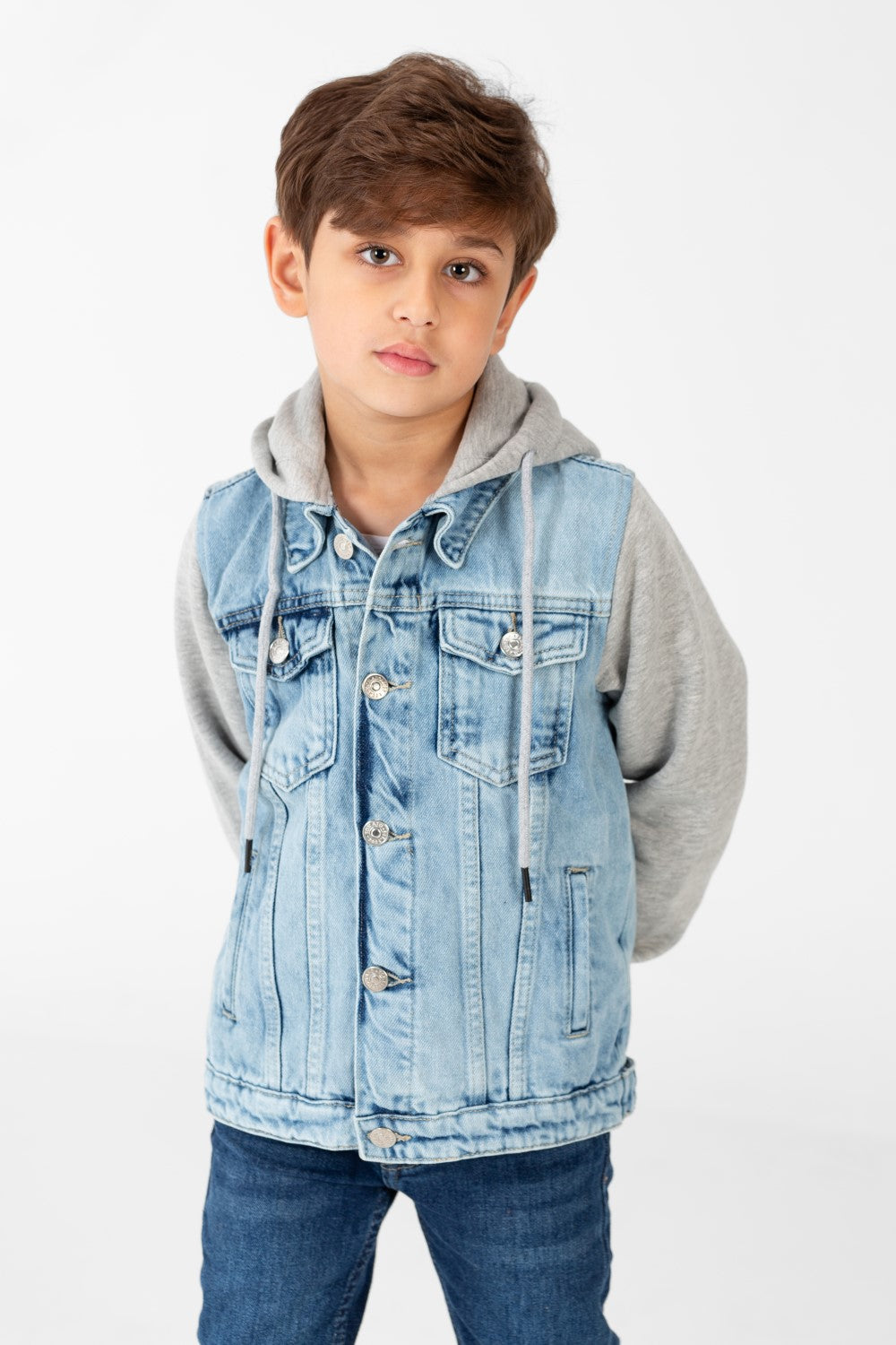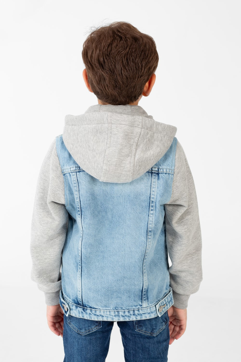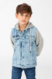 Elevate his outerwear game. Add this distinguished Boy Denim Jacket with Melton Sleeves to his collection today and embrace the perfect fusion of style and lasting quality.