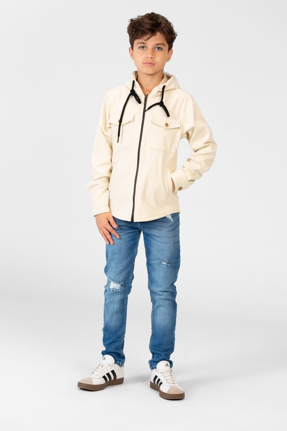 Imagine your son, comfortably shielded from the winter chill, enjoying outdoor adventures with ease. This Boy's Fur Padded Hood Shirt with Full Front Zip ensures he stays warm and protected, letting him embrace the season without hesitation.