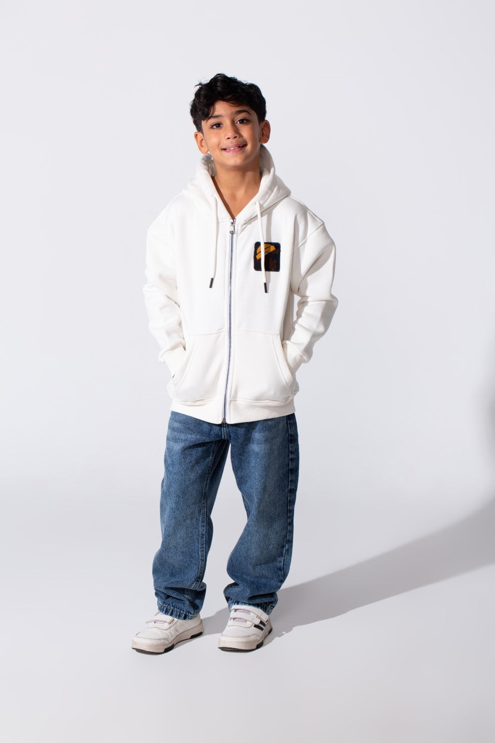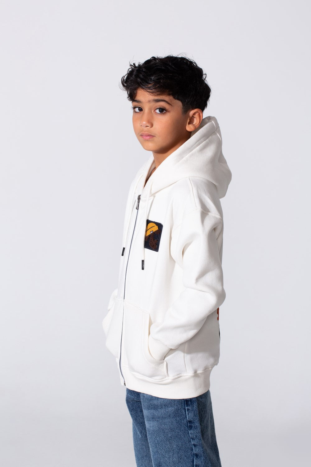 Looking for the perfect blend of comfort and cool for your boy? Meet the Boy's Milton Oversized Printed Sweatshirt With Zipper And Hood!