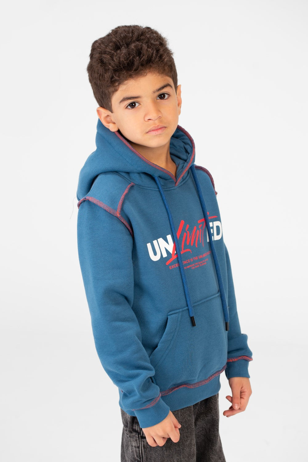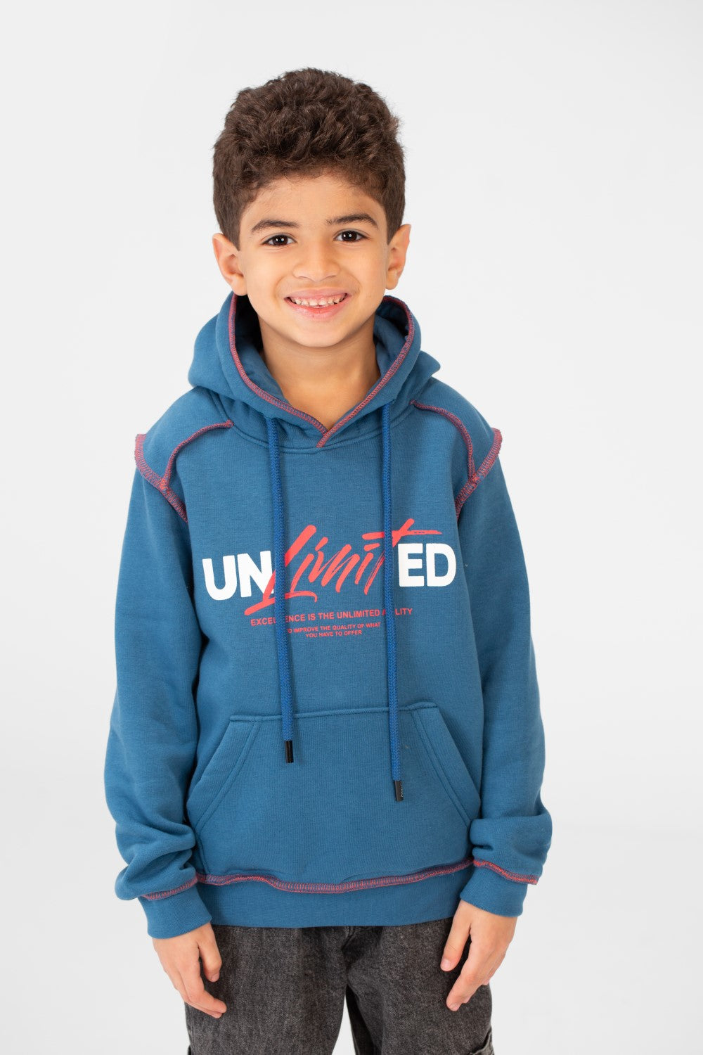 Perfect for school days, weekend adventures, or just lounging, this sweatshirt offers a modern fit that keeps him looking sharp. It's a versatile addition to his casual wardrobe, ensuring he stays cozy no matter the occasion.