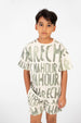 This Print Outfit is more than just clothing; it's a statement. The all-over print ensures he'll stand out, while the oversized fit provides a contemporary silhouette that's both fashionable and practical for active play. It’s the ideal choice for parents seeking quality, style, and durability.