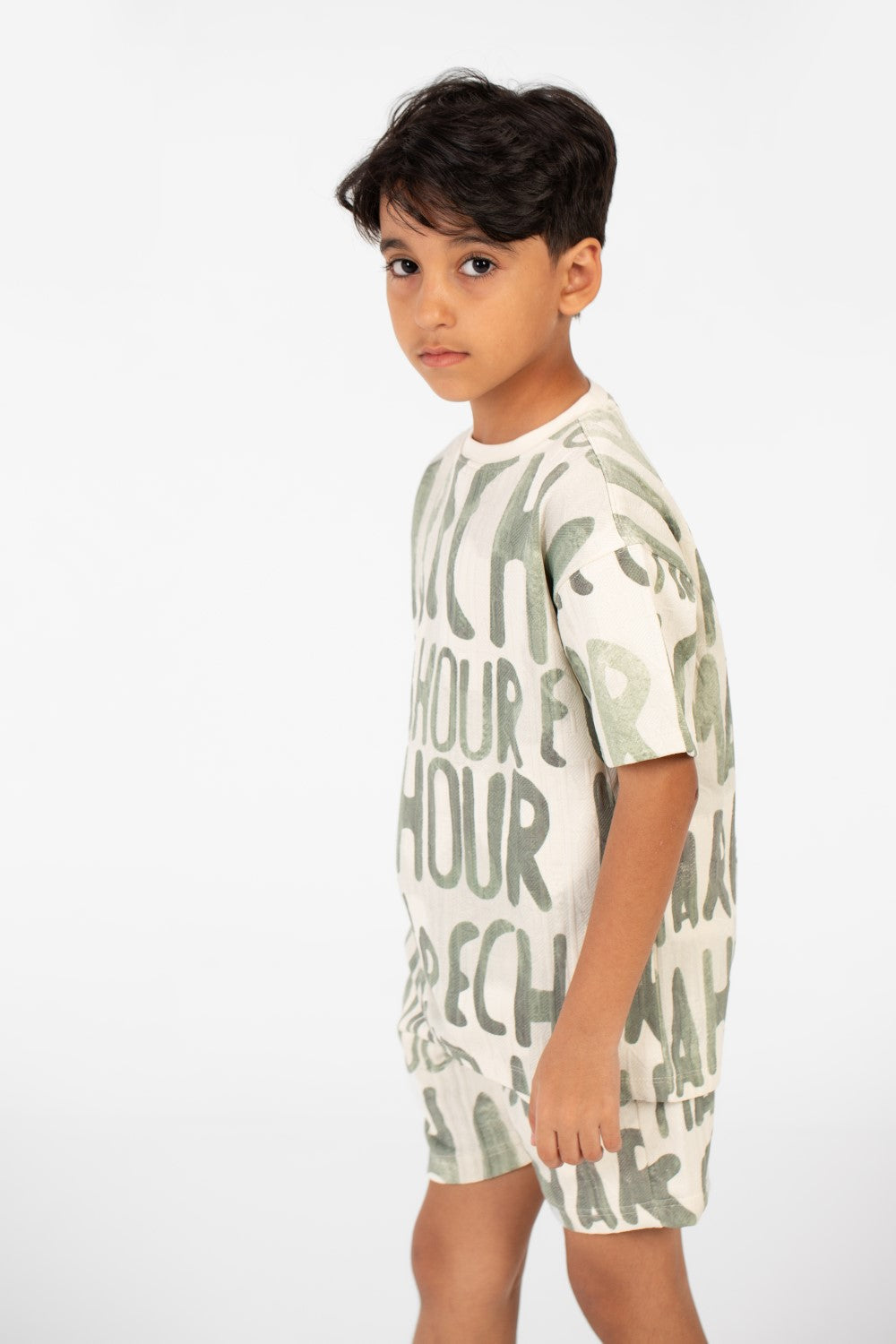 Don't miss out on this limited availability collection. Elevate his summer style today and let him embrace his individuality with this amazing Boy's Oversized All Over Print Outfit.