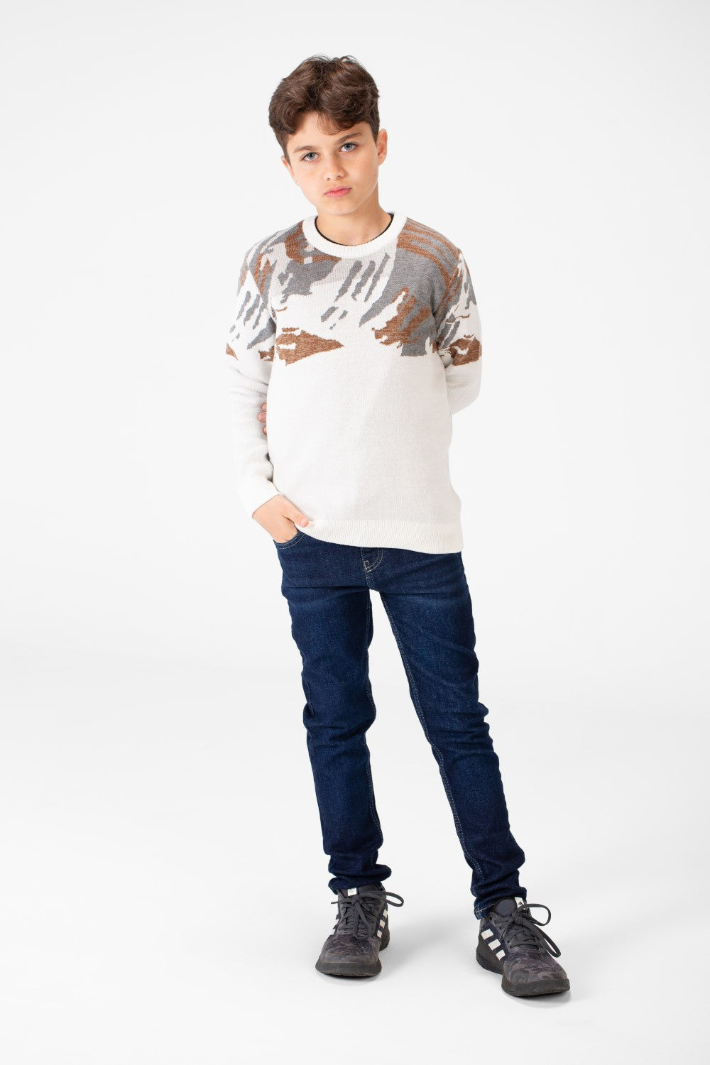 Keep your little one warm and stylish this season! Introducing the Boy's Round Neck Long Sleeves Jakar Pullover, a must-have addition to his wardrobe.