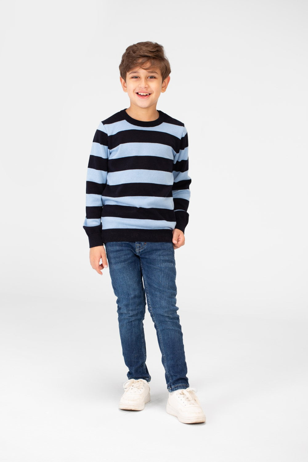 This essential Cotton Pullover is designed for the Winter 2025 collection, featuring a classic Boy Striped pattern that never goes out of style. It's the perfect blend of comfort and trend-setting fashion for your active boy.