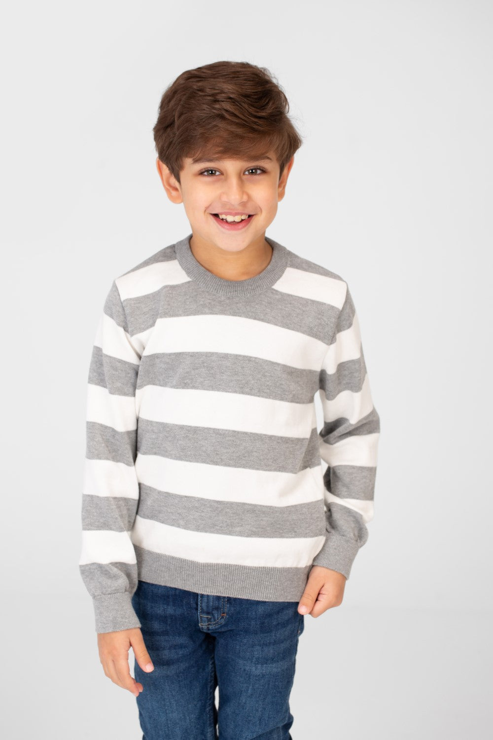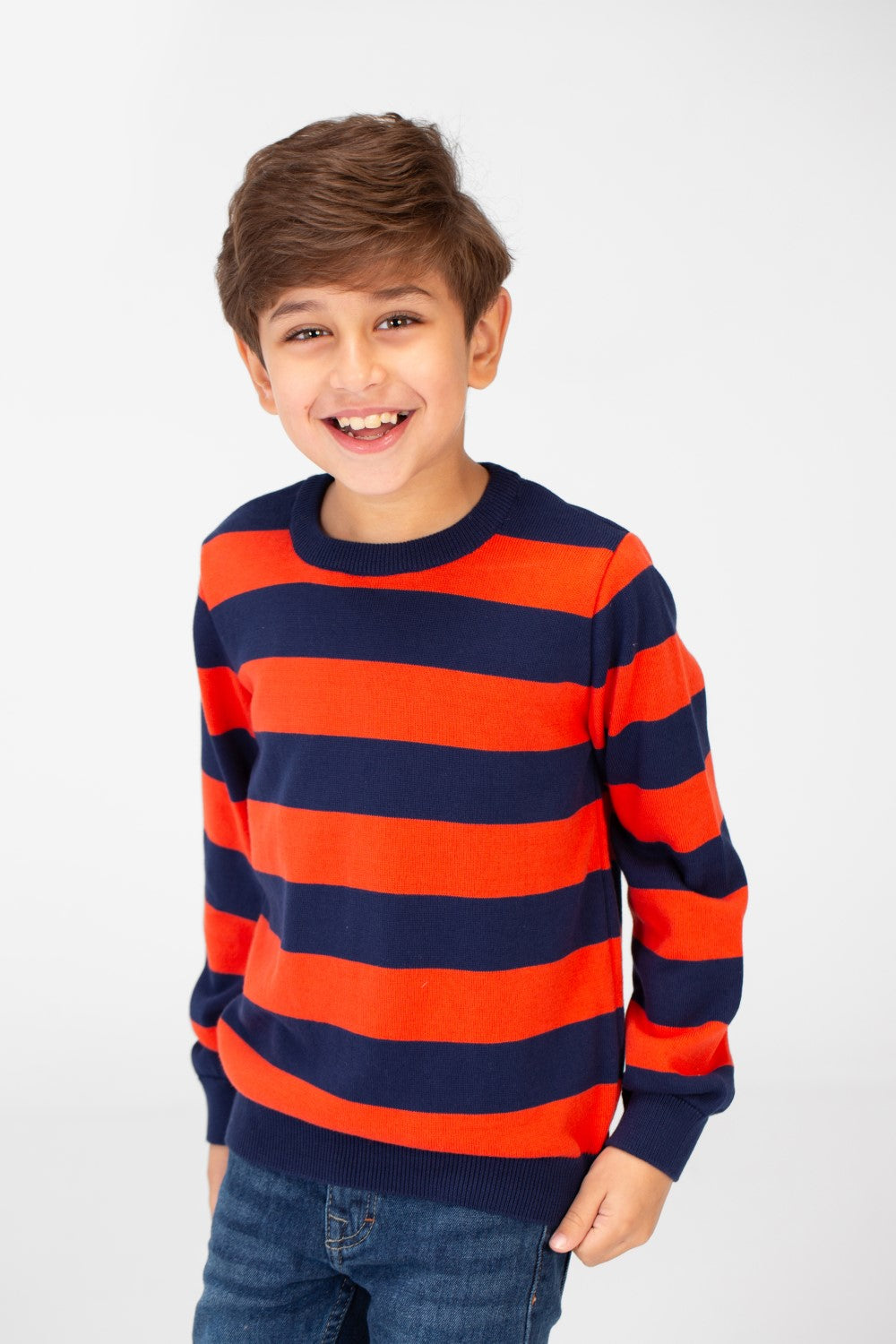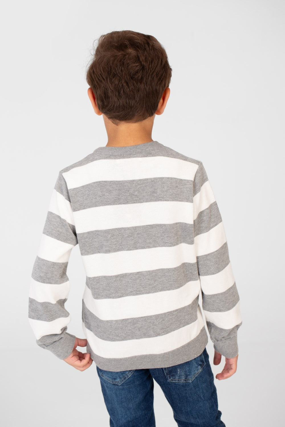 Ready for cooler weather? Keep your little one warm and stylish with our Boy's Striped Cotton Pullover Sweater.