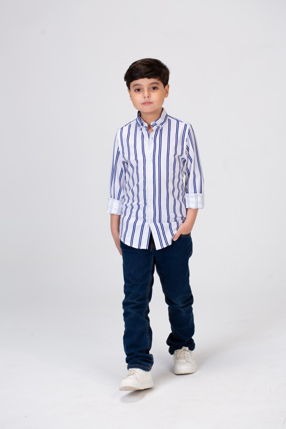 Add this versatile Boys Striped Shirt to your cart today and let your child step out in style!
