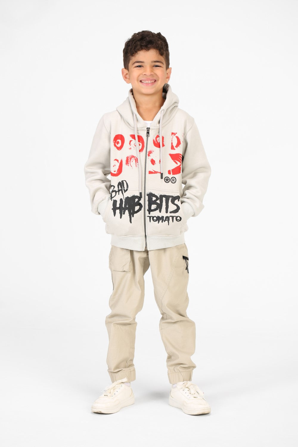 Brighten Up His Wardrobe! Looking for a fun and stylish sweatshirt for your boy? Discover the Boy's Tomato Printed Full Zip Sweatshirt, a perfect blend of comfort and trend-setting design.