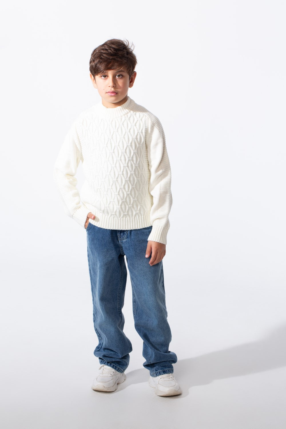 Introducing the Boy's Tomato Slim Fit Knit Sweater Pullover. Crafted for comfort and designed with a contemporary aesthetic, this pullover is the ideal solution. Its slim fit ensures a neat silhouette, while the round neck and long sleeves provide essential warmth. Give your child the gift of style and comfort with this versatile addition to their wardrobe. Shop now and elevate their look!