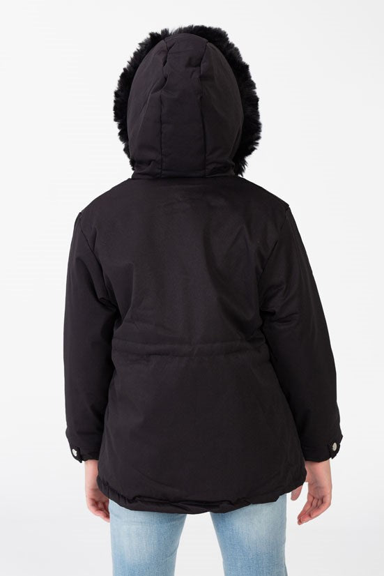 Don't let the cold weather stop the fun. Give your child the gift of warmth and style. Shop the Girl's Gabardine Fur Hood Jacket today and ensure she's ready for all her winter activities!
