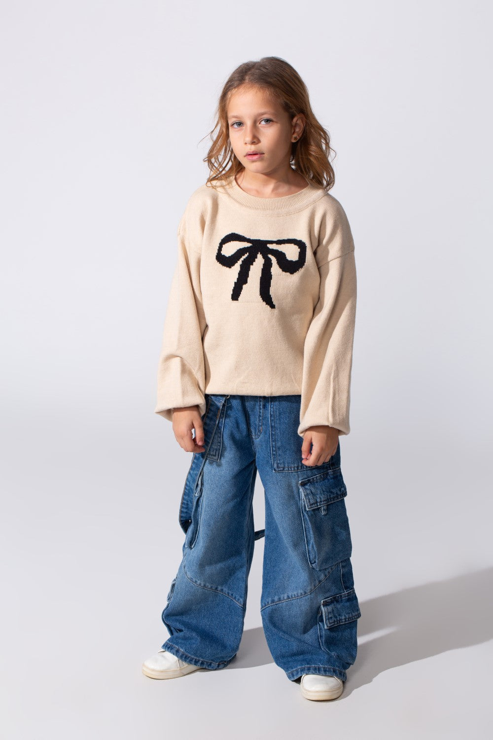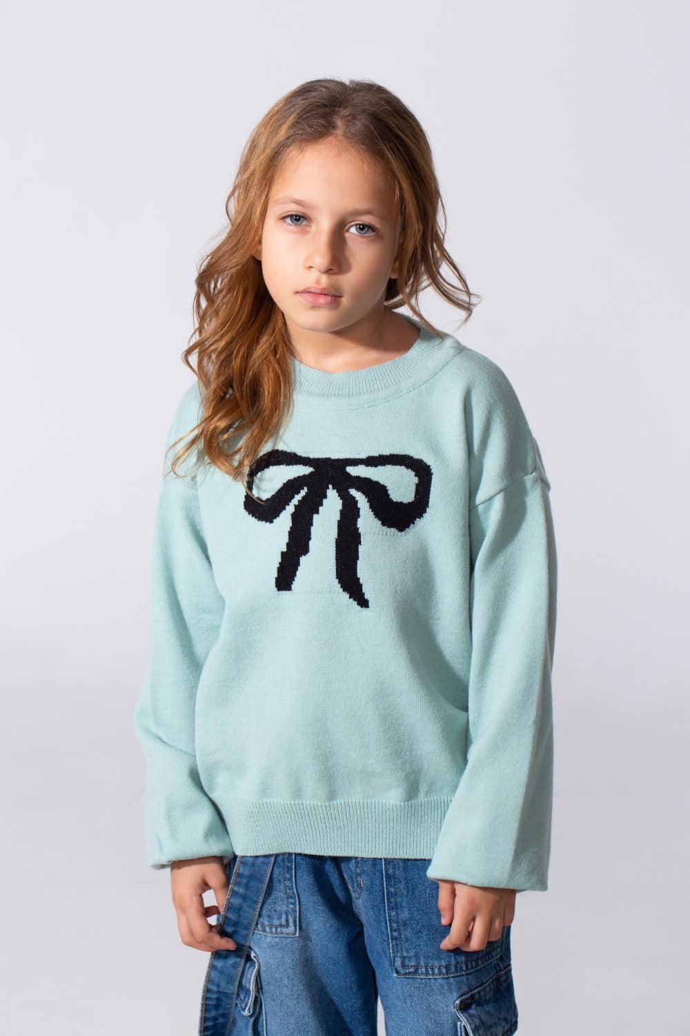 This adorable pullover features a delightful bow print on the front, adding a touch of sweetness to any outfit. Crafted from soft and cozy fabric, it ensures she stays warm and comfortable throughout the day, making it an ideal choice for the Winter 2026 collection. The trendy round neck and long sleeves offer a classic yet modern look that's perfect for everyday wear.