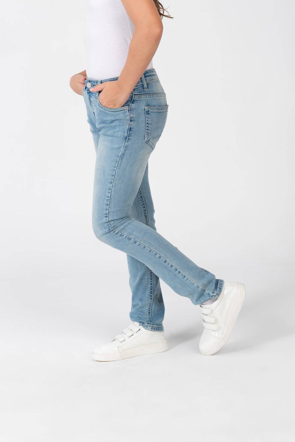 Introducing the perfect solution: Girl's Plain Jeans Pants With Basic Details. These classic jeans are designed for ultimate versatility and comfort, bridging the gap between everyday wear and lasting style. Upgrade her wardrobe with this essential piece that combines durability with timeless design. Shop now and discover the ease of outfitting your little one with quality essentials.