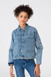 Imagine her effortlessly grabbing this Girl's Slouchy Denim Jacket for school, playdates, or weekend outings. It's designed with a modern cut that gives a relaxed, on-trend vibe, making her feel confident and stylish. The practical front pockets are perfect for stashing little treasures she finds on her adventures. This jacket is durable enough for everyday wear and stylish enough to become her new favorite.