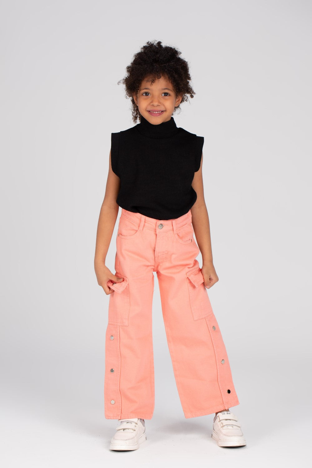 These pants are designed with a unique cut and feature a flattering wide leg style, perfect for any occasion. Crafted from durable gabardine fabric, they offer both fashion and function for the modern young girl.