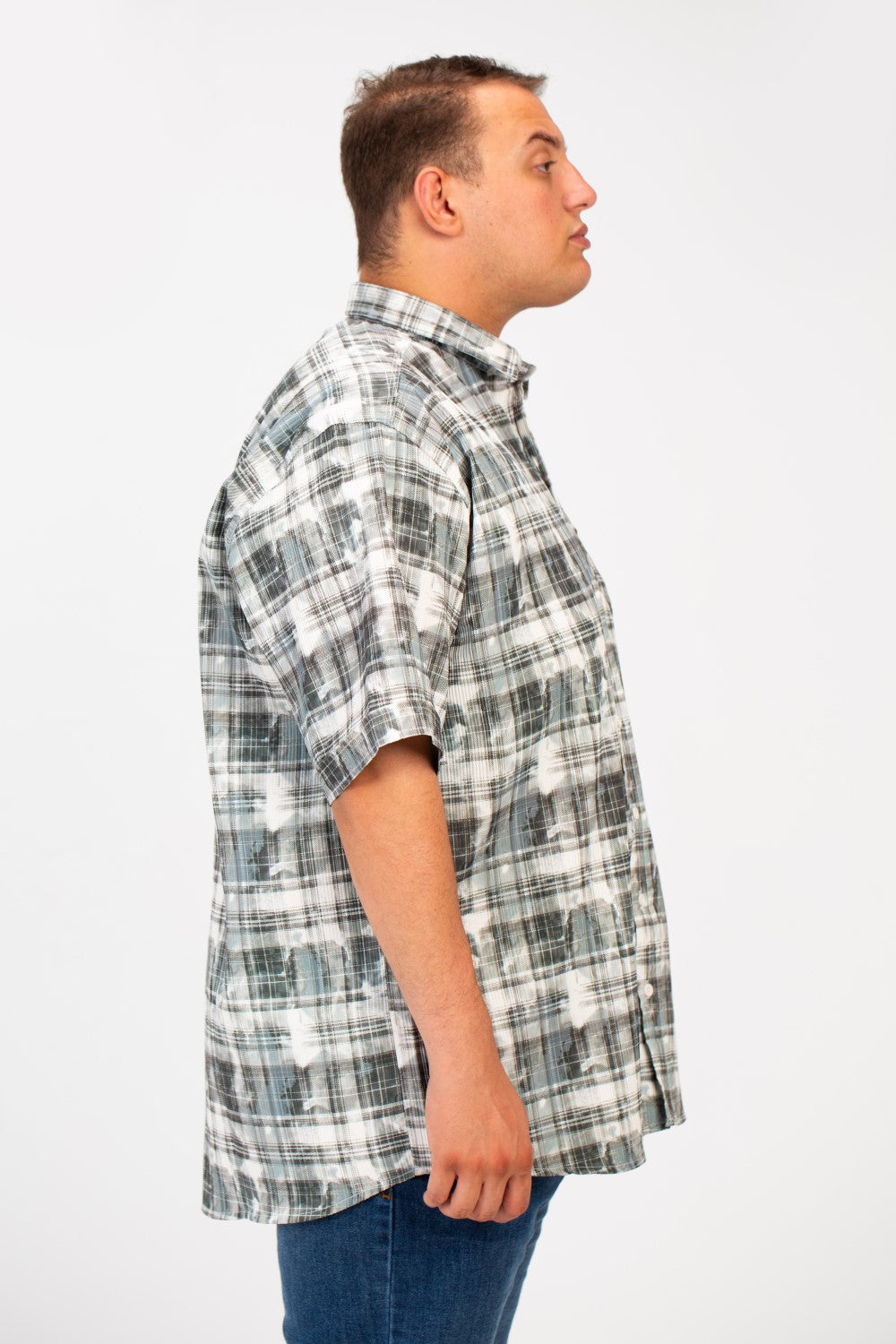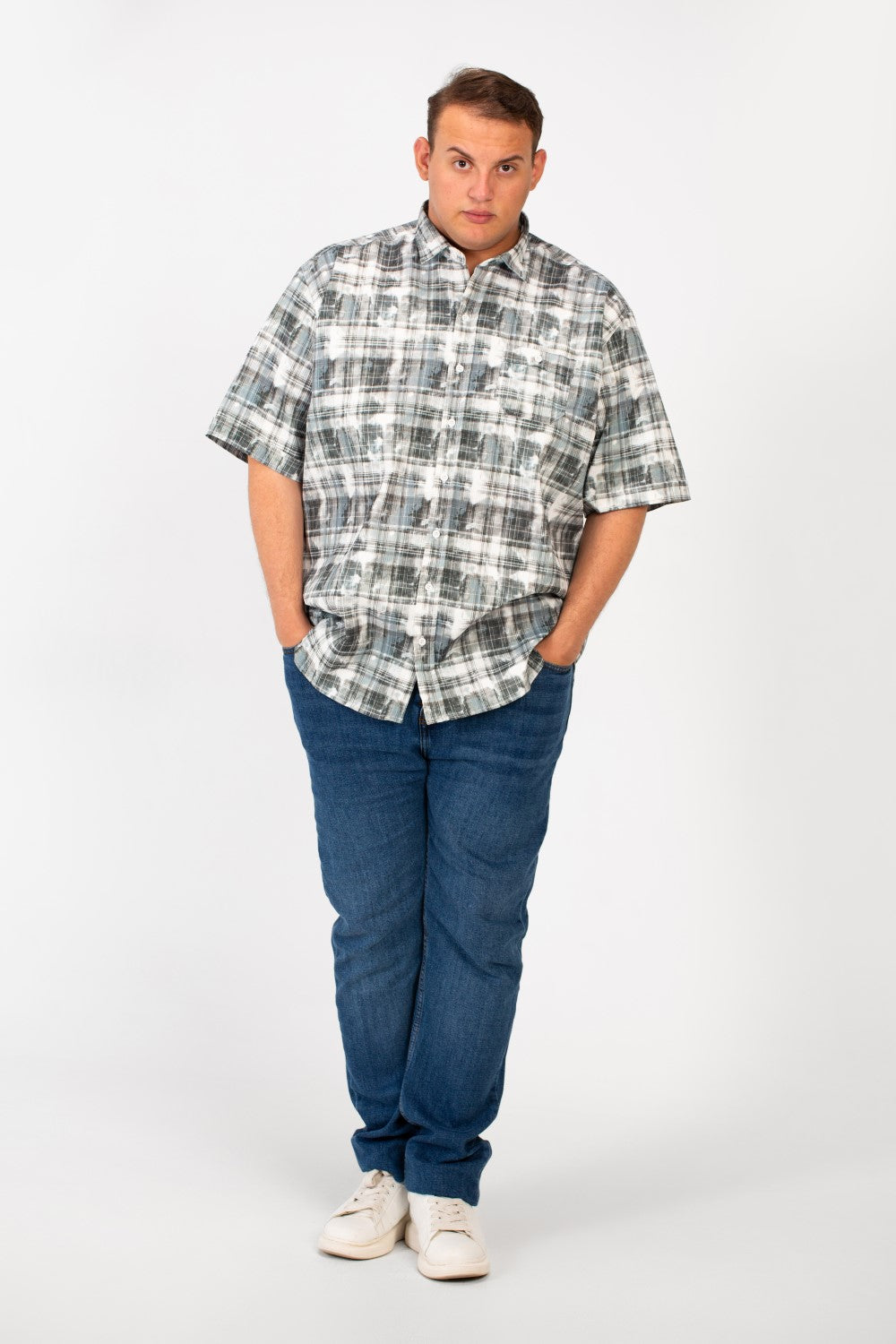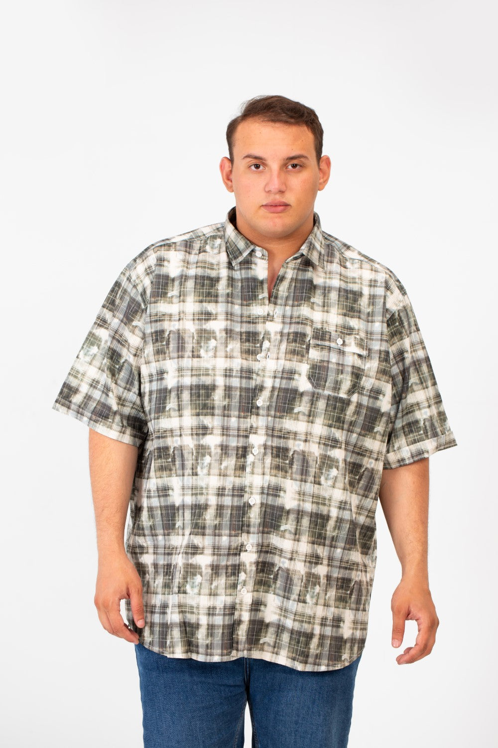 Introducing the Men's Big Size Checked Printed Half Sleeved Shirt. This shirt is designed for the modern man who demands both comfort and style. Featuring a classic checked print and convenient front pocket, this Printed Half Sleeved Shirt offers a relaxed fit perfect for warmer days. Enjoy effortless style and all-day comfort. Add this essential piece to your collection today and experience the difference!