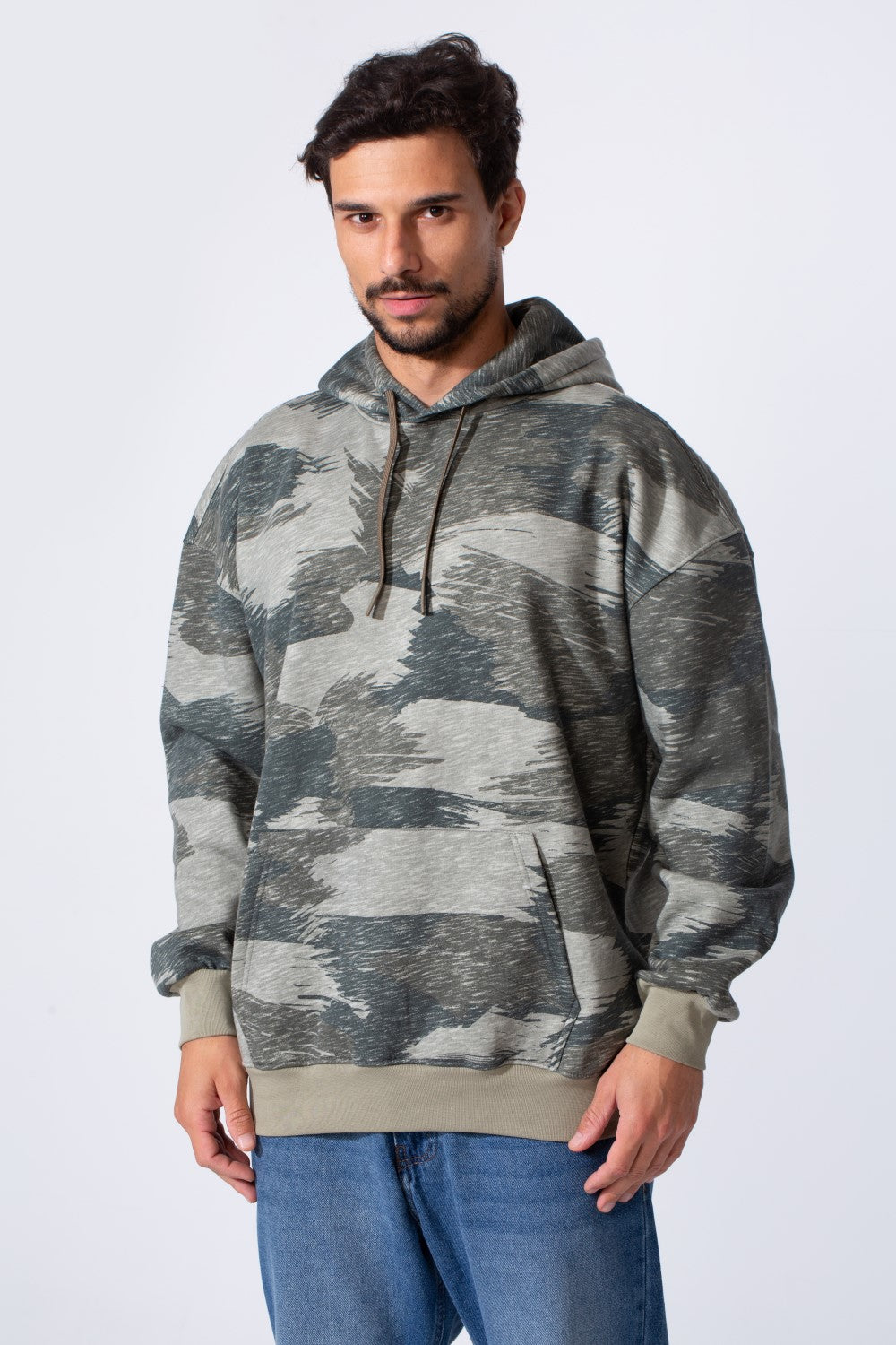 Introducing the ultimate solution: the Men's Camo Melton Regular Fit Hooded Long Sleeves Sweatshirt. This piece is more than just apparel; it's your new go-to for sophisticated casual wear. Featuring an eye-catching camo design and a comfortable regular fit, it bridges the gap between rugged style and everyday comfort. Upgrade your wardrobe and embrace a look that’s uniquely yours.