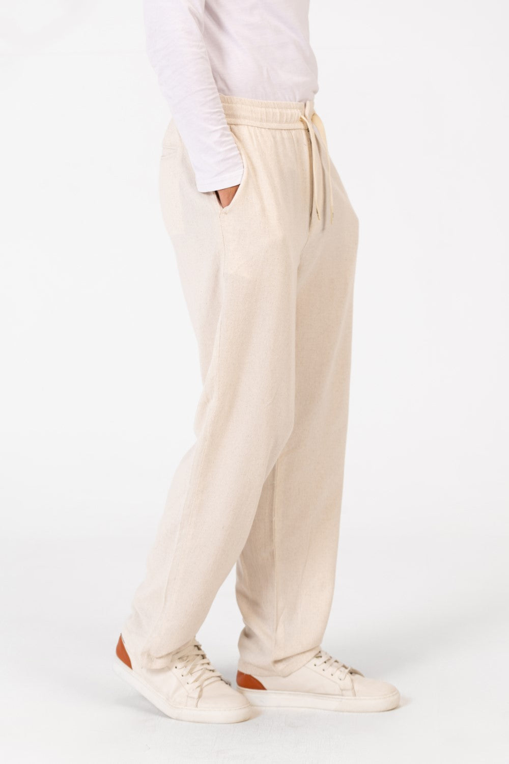 Designed for the modern man, these pants blend effortless style with essential comfort. Featuring a convenient drawstring waist, you can easily customize the fit for all-day wear. Perfect for the Summer 2025 season, these Linen Basic pants are your go-to for relaxed yet polished looks.