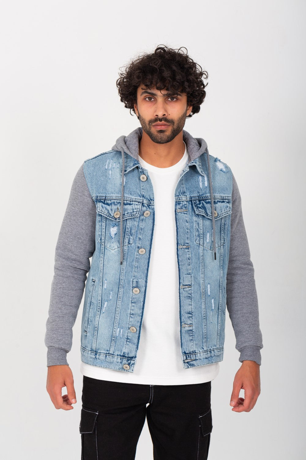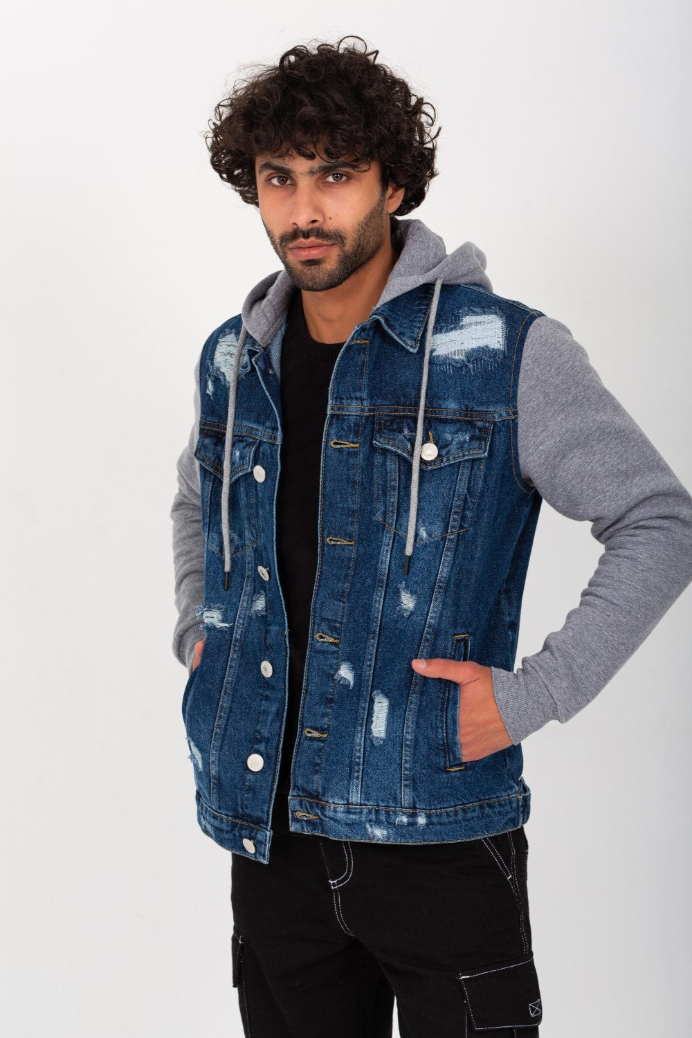 Upgrade your wardrobe with the trendy and versatile Men's Denim Melton Hooded Cutting Details Casual Slim Fit Jackets With Melton Sleeves from Tomato. This jacket is a perfect blend of style and comfort, making it a must-have for every fashion-forward man.