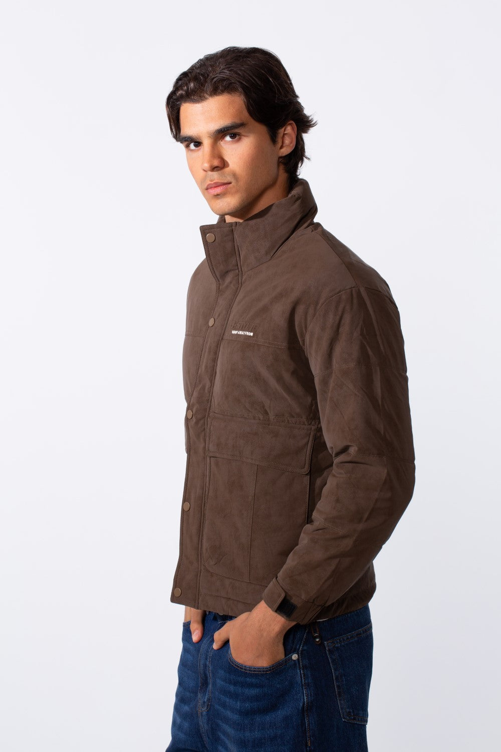 This Men's Front Pockets Long Sleeves Text Print Waterproof Jacket offers the perfect blend of functionality and modern design.