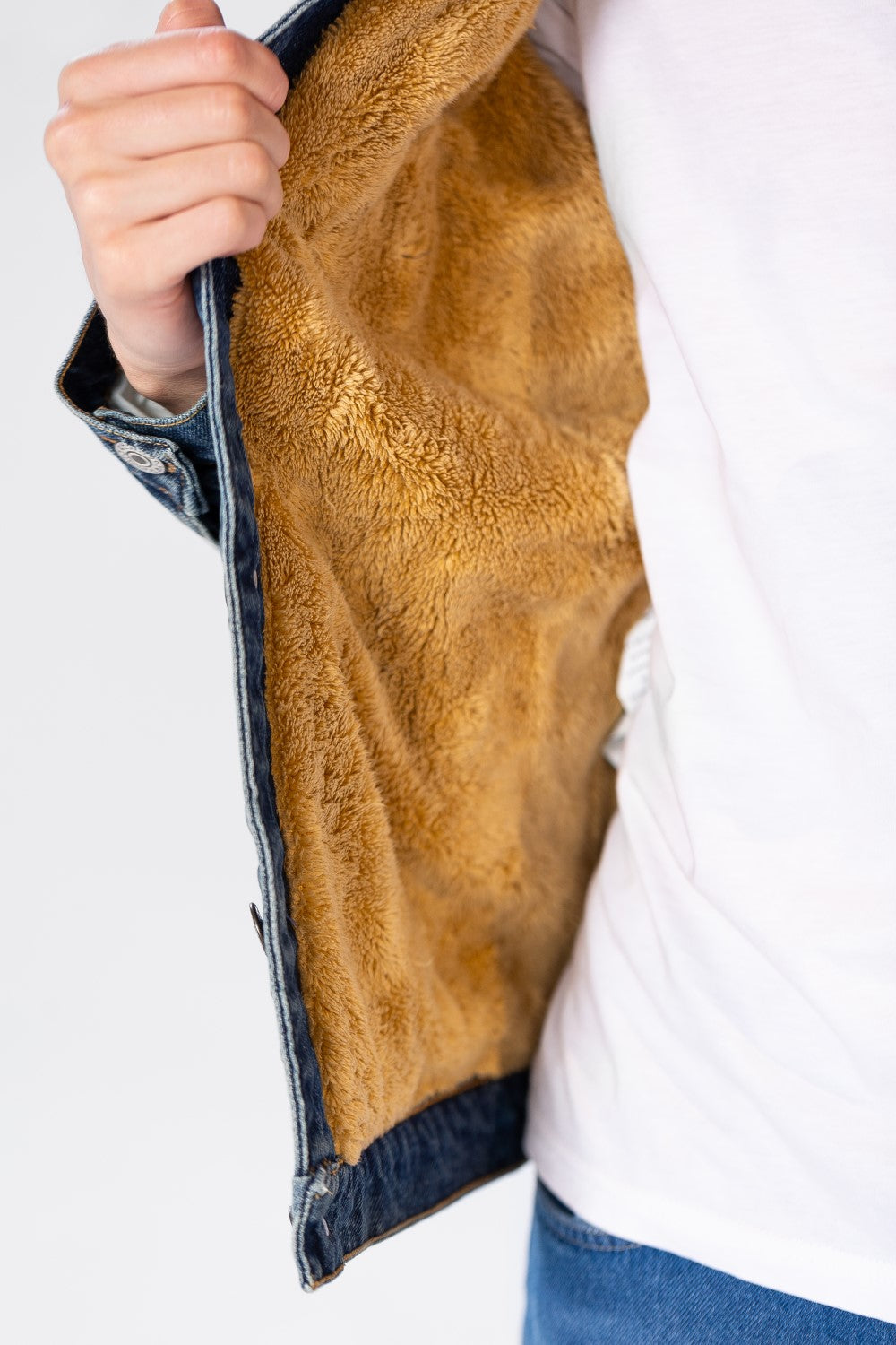 Discover Unmatched Style and Comfort with Our Exclusive Men's Fur Padded Denim Jacket With Pockets And Buttons On The Front