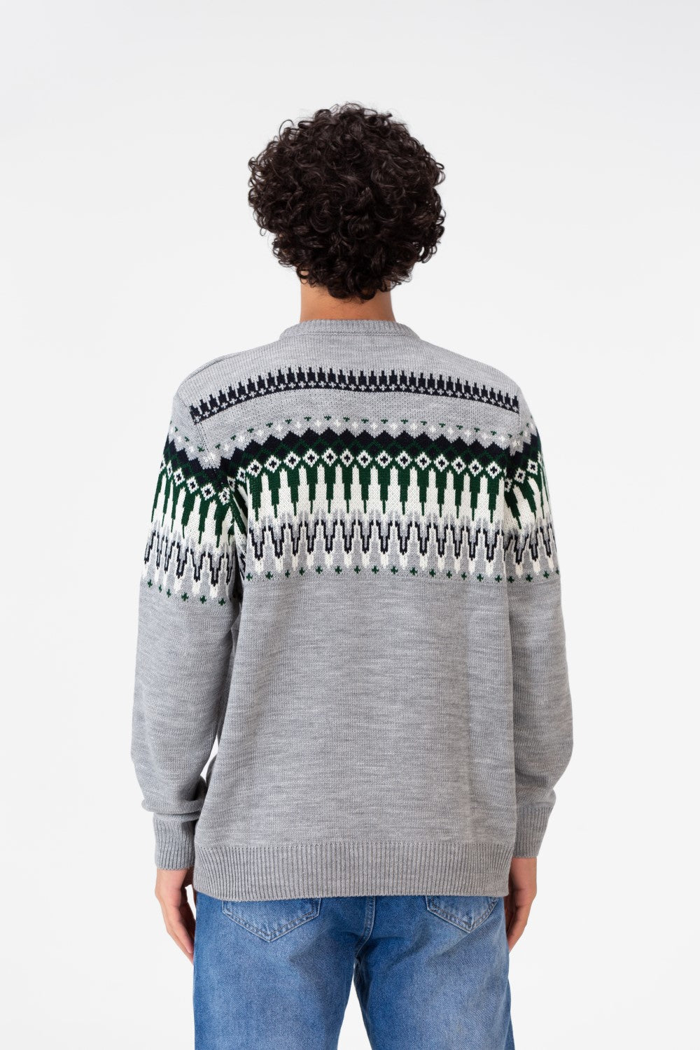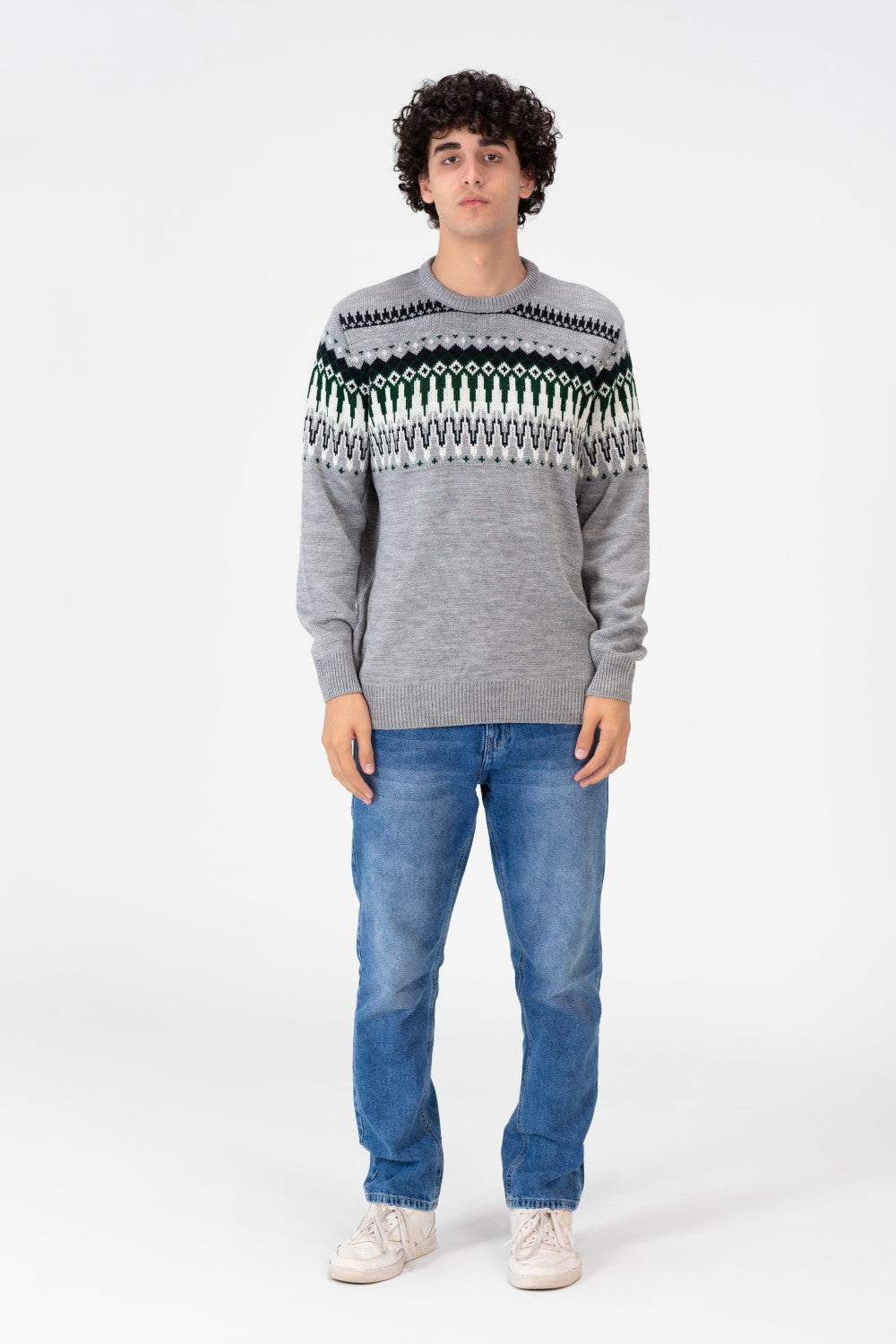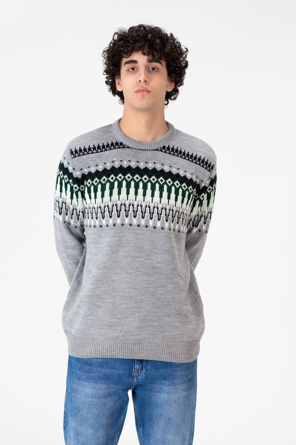 Introducing the Men's Round Neck Long Sleeves Jakar Pullover With Print On The Top. Crafted for the modern man, this pullover features a stylish round neck and comfortable long sleeves, designed with a unique Jakar weave for added texture and appeal. The print on the top adds a distinctive touch, making it a standout piece for your Winter 2025 collection. Made from high-quality materials, it ensures lasting comfort and durability. Embrace the perfect blend of fashion and function.