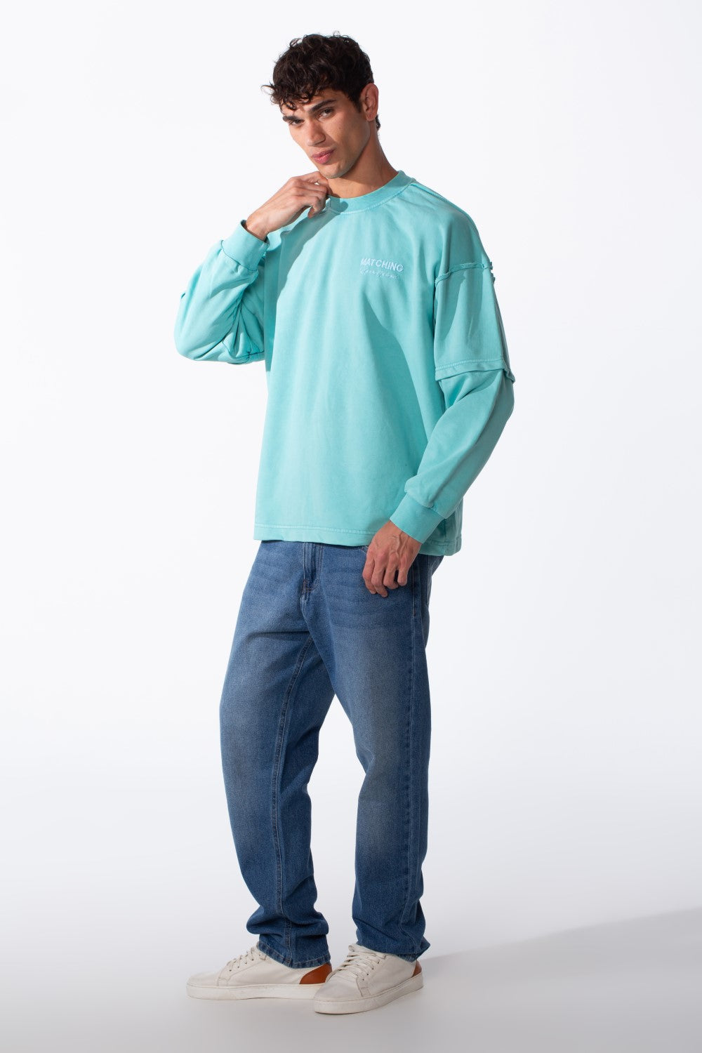 Designed for the modern man, this sweatshirt features a relaxed Oversize Round neck and a contemporary Neck Modern cut. The Cut Long sleeves provide extra coverage, perfect for layering or wearing on its own. Crafted with a soft, washed fabric, it offers a lived-in feel from the very first wear.